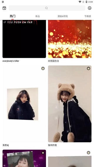 在这里除了热门,还有新品、漫画&特效、节奏感和伤感等不同主题,具体的根据用户需求来决定,选择好之后,进入模板制作,如图所示: