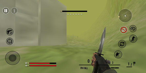 操作也挺简单的,键位和一般射击游戏差不多,不过要注意HP和EN的显示,奔跑会消耗耐力值,生命值也不会自动恢复。玩的时候一定要时刻观察周围敌人的动向,不然很容易被偷袭。