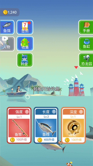 9、另外,玩家们还可以将自己的钓鱼工具升级,让它的强度、长度、深度得到一个更高的层次。