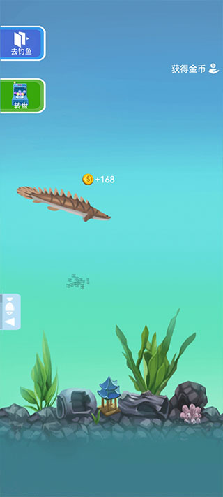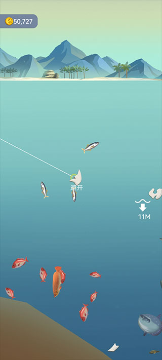 3、钓鱼的方式就像平时我们在生活中一样,抛出鱼竿即可。