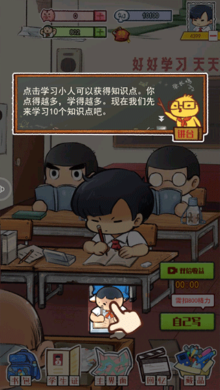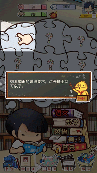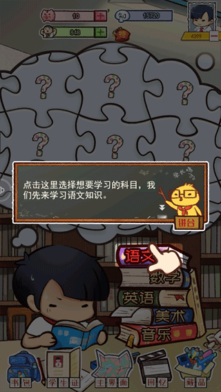 2、图书馆功能:获得知识点后可以进行小学课本知识学习,增加5项属性。