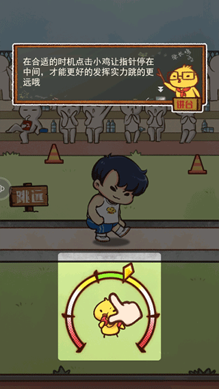 7、跳远时,点击小鸡中间的位置,才能跳的更远