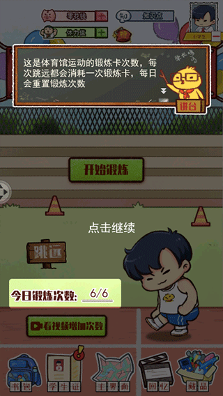 6、体育馆每天有锻炼次数限制,每一次跳远都会消耗次数,第二日会重置次数
