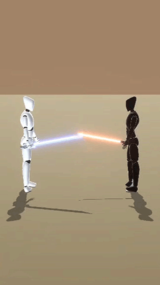 1、每一场比赛都非常精彩,你将在竞技场中和对手展开战斗,使用光剑来完成格斗任务。