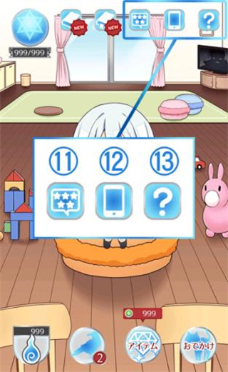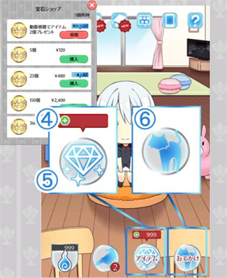 5、这是游戏配置道具。集齐5个可以获得一次彩蛋时间,或者可以恢复(3)中的经验值。开始游戏便赠送5个道具,请一定要多多使用。