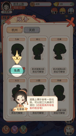 3、点击招租按钮就可以成功招到租客了,但是不要乱点哦,里面有很多租客可以选择,玩家可以最大化利益的选择会消费的租客。