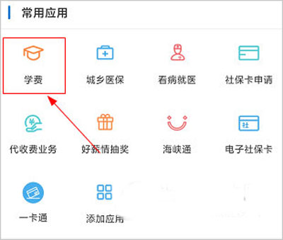 1、进入众行海峡APP常用应用列表,找到“学费”。