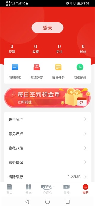 “夹江发布”APP下载后可以正常的浏览信息,但是不能评论,要进行登录注册后才可以评论留言。(1)点击右下角“我的”,进入个人信息界面。