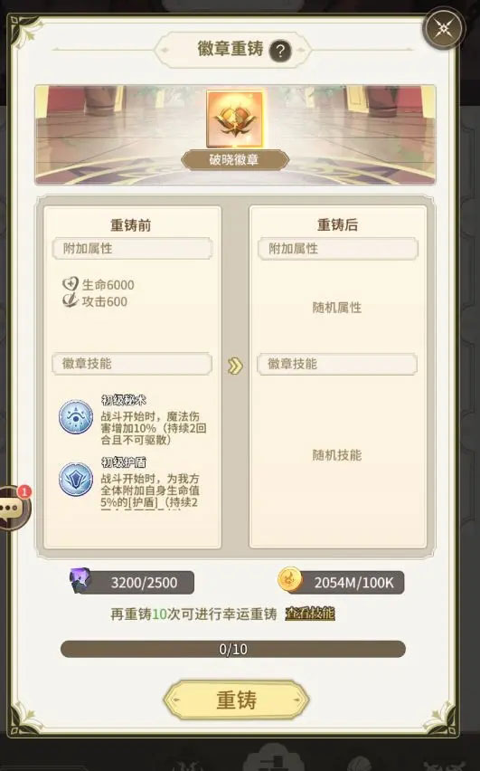 *低级徽章可以在【铁匠铺】合成更高等级的徽章,带来更多的属性加成。