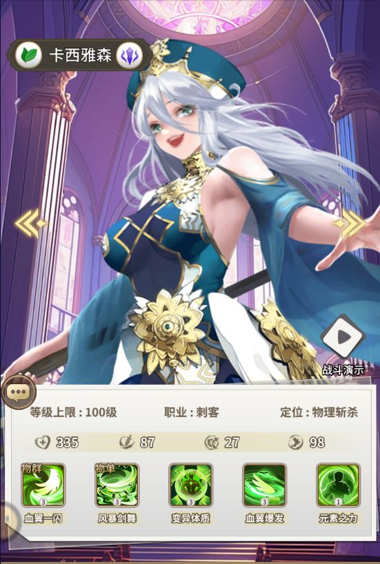 是游戏中最强的净化能力,她在场时,根本不用担心debuff,单体治疗奶量很足,群体治疗的数量很多,还可以增加前排坦度。