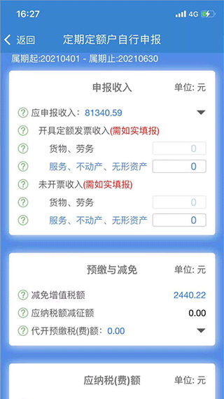 3、进入申报页面,用户可进行更正、申报两项功能服务,点击申报,即可跳转至申报页面
