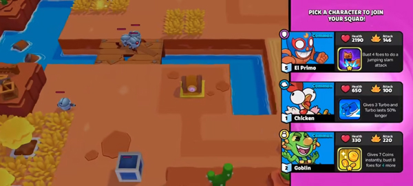 和一个朋友组队对抗其它三个队伍。收集到最多宝石的队伍获胜。获胜队伍分享战利品,失败也能得到。有任务、表情、皮肤、5v5、排名模式。所有角色都有特殊技能。
