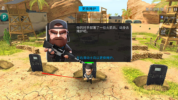 2、当对手部署了火箭兵时,通过左右滑动可以控制士兵更换掩护;