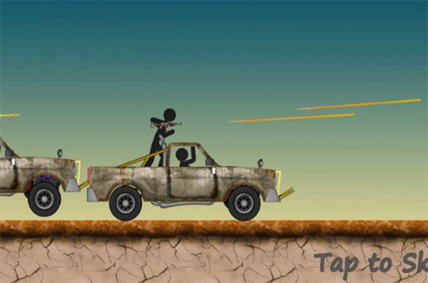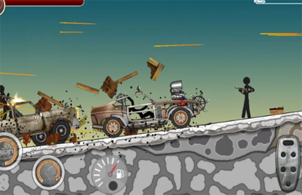 火柴人歼灭2是一款以火柴人为题材的射击战争类的冒险游戏,游戏采用精致的横版风格进行打造,为玩家们带来超棒的视觉体验!在游戏中玩家驾驶战车车在路途中会遇到其他火柴人的狙击,你需要用驾驶的战车将他们撞飞,屏幕左侧分别操控战车的重心前置或后置,在飞跃和撞击时保持重心避免翻车,屏幕的右侧是油门按钮,按住不动就会进入冲刺模式;战车的装备可以抵御其他火柴人的射击和撞,玩家可以对战车的装备进行升级,侧重马达轴承提升战车的性能,升级绞肉器火焰喷射器增强杀伤力;此外,还可以还使用枪械射击对方,从而顺利达到终点完成挑战。该游戏给玩家带来了轻松有趣的体验,简单的操作让每个玩家都能够快速的上手,丰富的玩法内容更是给玩家欢乐的体验!