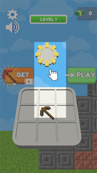 1、进入游戏,现将锄头安装在挖掘机上,然后点击play进入关卡