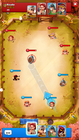 3、玩家可以通过向下滑动屏幕,此时会出现攻击路线,玩家可以适当调整角度进行攻击;