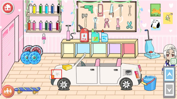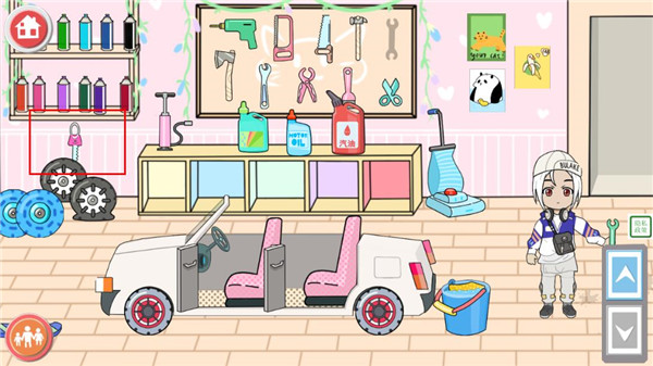 1、点击架子上的颜料瓶,可以喷出雾体改变车体颜色;