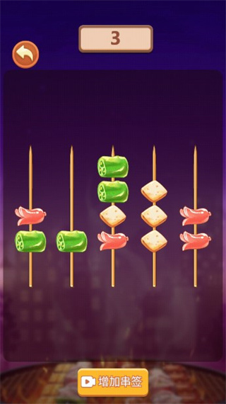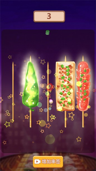 串个串串是一款以制作各种美味烧烤串为题材的趣味模拟经营游戏,简洁卡通的游戏画面,轻松欢快的背景音乐,再加上丰富的关卡设计,让玩家体验无限趣味的穿串烧烤玩法。游戏中玩家是一名夜市的烧烤摊老板,经营着一家串串店,你可以通过解锁更多的食材,让串串店的种类变得更加丰富,然后根据顾客的要求制作各种各样的烧烤食材,满足大家的口味需求,吸引更多的顾客,扩大自己的带有特色的串串店,获取更多收益。玩法也很简单,在本串串店中有豆腐,鸡翅,火腿肠,烤鱼,茄子等数十种菜品,你只需要将相同的菜品串到一起,就能升级成香喷喷的美味串串。