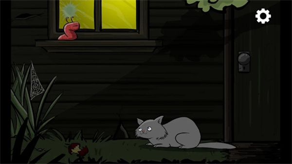 第二关:点门把,猫来,点蛛网,点烂苹果,虫吐浆,猫走,点猫,猫又来,点门上树影,进洞,狂点4个钮,出来,点猫,猫死,点门把,过。