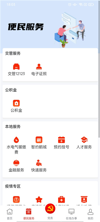 3、在便民服务中,拥有交管12123,电子证照,公积金,水电费等生活缴费服务。