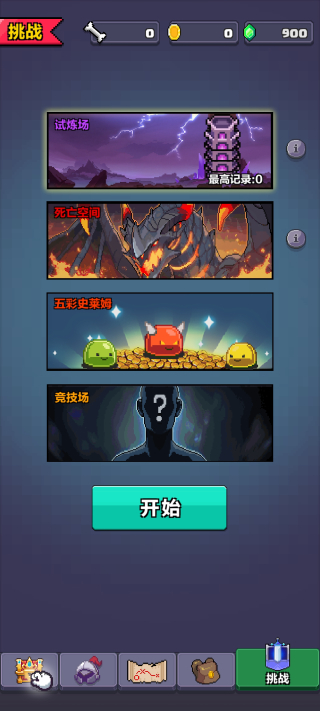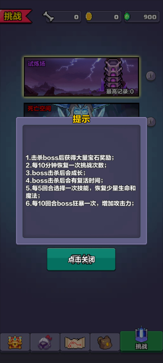 游戏流程包括新手6个地图、试练塔(100层)以及死亡空间、五彩史莱姆和竞技场(60层)。