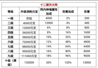 1、个人只推荐使用十二天都神煞大阵,因为提供的伤害与伤害加成属性是通用的,并且包括的神魂较多且都是提供爆伤的。