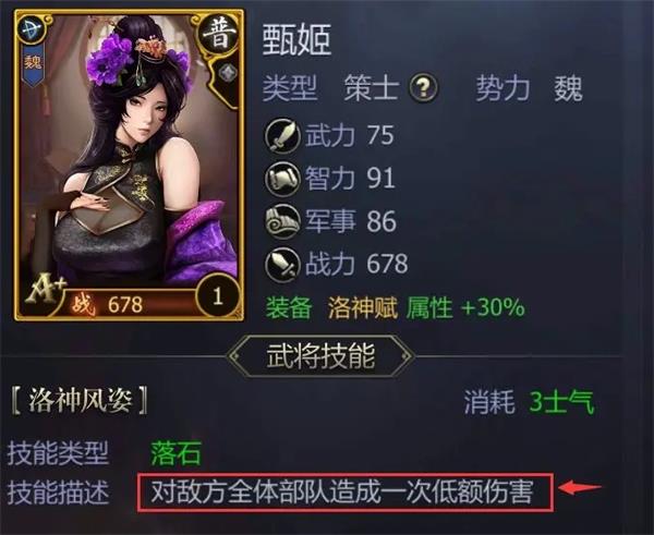 新手任务期间,可以获得强力群伤武将 --【甄姬】妹子!甄姬的技能是全体AOE伤害,自带增伤被动,伤害爆炸!可作为核心武将优先晋级。