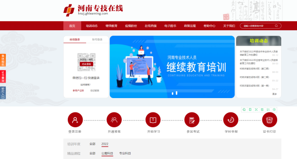 1、先输入河南专技在线的官方网址https://hnzj.ghlearning.com/。