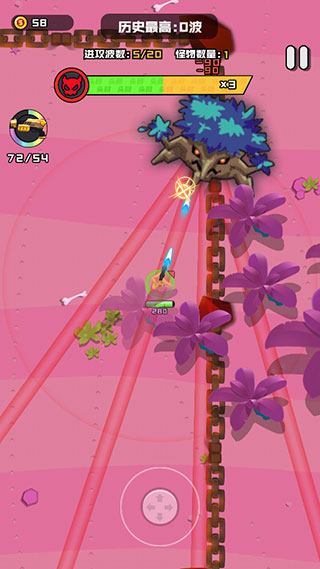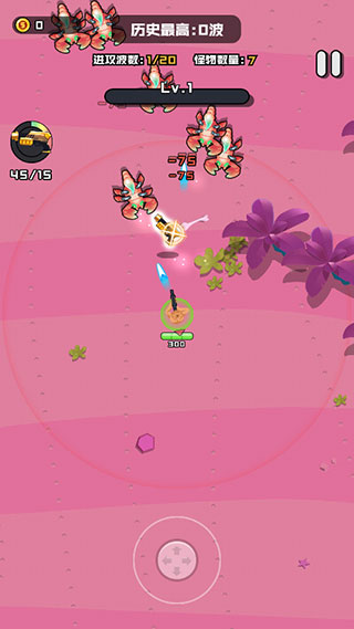 3、进入游戏后通过轮盘控制角色移动,角色会自己攻击敌人
