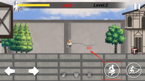 3、当还是小火柴人时点击图示进行跳跃,可进行多段跳