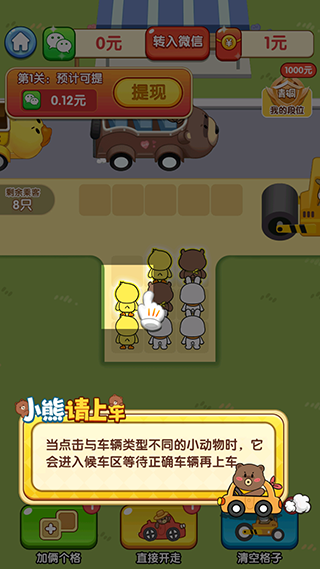 小熊请上车是一款益智类的游戏,玩家的目标是让不同颜色的小熊上对应颜色的车。在这里你需要通过点击屏幕上的方块,让相邻的同色方块消失,从而让小熊移动到车辆的位置,并且游戏有多个关卡,每个关卡都有不同的难度和目标。此外,小熊请上车的画面风格是可爱的卡通像素,游戏的音效也很适合儿童。同时游戏还有红包奖励,让你在闯关的同时也能够获得现金奖励。感兴趣的朋友欢迎下载体验!