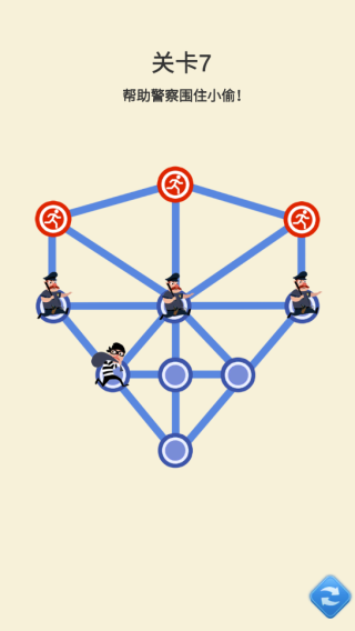 6、将中间警察向下移动,包围住小偷所有出路,即可胜利