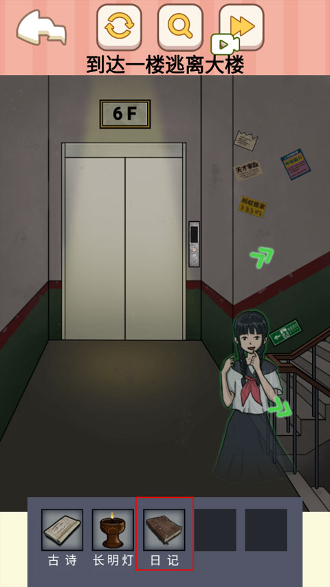 9、遇到五楼的女人也不用管她,后面直接点击一楼就可以逃离成功了。