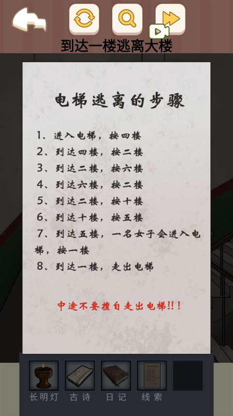 8、当获得电梯逃离的线索之后,根据这个操作来进行逃离。