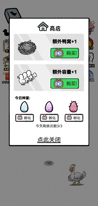 丰富多样激萌的鸭子等你来解锁,等级越高的鸭子战斗力越强,产生的金币也更多。