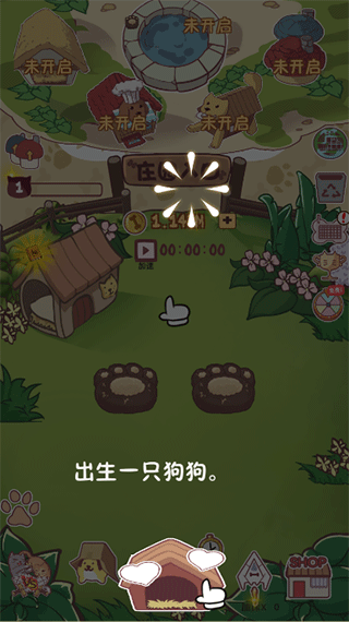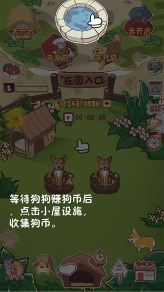 3、狗狗可以放置打工,赚够了狗狗币,点击小屋设置可以收集,或是建设新设施