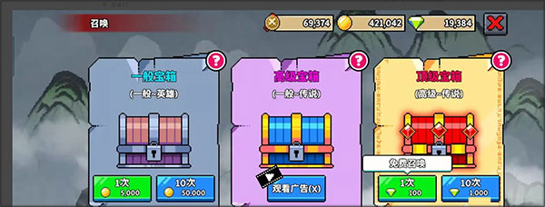 3、可以看到有三种宝箱,每隔一段时间会有免费的次数;