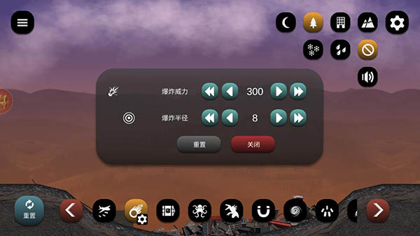 失控城市模拟器最新版是一款新奇有趣的模拟类游戏,这个游戏和拆迁模拟器游戏的主题有点相似,都是在破坏过程中享受解压的乐趣。进入游戏后玩家可以在这里选择不同的城市模拟破坏的过程,你可以用核弹、导弹、黑洞、激光束或闪电粉碎城市,如果想清晰的观察破坏过程中的细微操作,还可以调节它们的威力或者更改半径,以便您可以目睹这些武器造成的破坏。游戏操作简单上手容易,画面感丰富多彩,还能让你体验到震撼的立体3D视觉效果,赶紧来挥挥你的小手让一切毁灭吧!