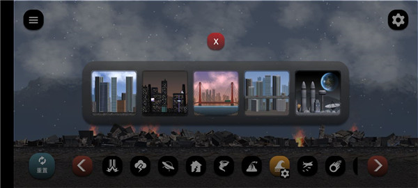 玩游戏的时候,你可以选择不同的场景和背景,还能调整天气和季节,体验不同环境下的城市摧毁。游戏的操作也很简单,点击灾难按钮就能开始攻击城市了。虽然听起来有点破坏性,但其实挺有趣的,尤其是看着原本繁华的城市瞬间变成废墟,那种感觉很刺激。