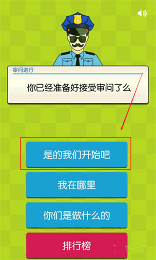 1、玩家一开始进入游戏界面就会看到一个警察叔叔,界面上有四个按键,对于初次进入的玩家直接选择第一个就是开始游戏了。