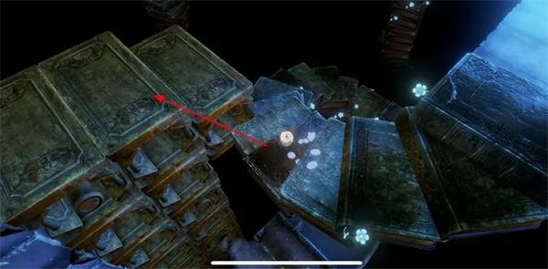 第6根蜡烛需要过去这片水,如果跳跃不上平台可以把这个盖子推过去,跳上盖子再跳跃上平台点燃第6根蜡烛。
