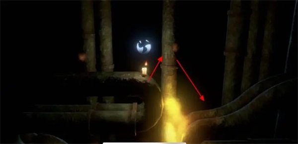第三章第二节打开铁门,如下图操作蜡烛推动螺旋桨即可打开铁门