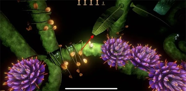 第四章第三关卡,如下方位置怎么过关呢,等屏幕暗下,刺花变小,沿着这特殊轨迹慢慢的通过,不要出声哦