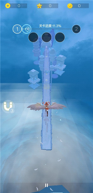 3、期间碰到黄圈会进行弹射跳跃并张开翅膀滑翔一段距离