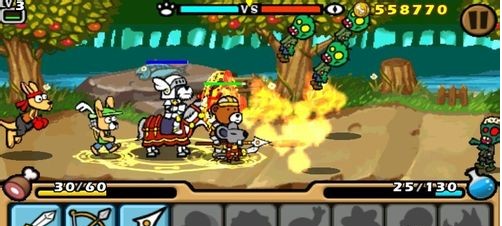 游戏中有多种兵种和装备可供选择,比如会跳击的街霸鼠、射火焰箭的罗宾兔、会穿刺攻击的皇家卫熊。帕拉狗还能使用各种武器,像能放冰冻弹的凛冰权杖,打拳波的怒拳权杖等。游戏里还有隐藏角色黑暗狗,击败它就能解锁更多玩法。