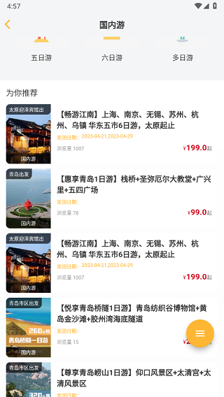 来旅行app是一款全面的旅行旅游软件,可以为你的行程定制住宿、景点介绍、行程的交通安排,以及当地的美食介绍,用最简洁的资源,尽情的享受一次最舒适的旅行。来旅行app的操作方便快捷,一键搜索和查询,无论你在哪里,都能让旅游线路、景区、酒店、拼游各类信息跟随你,始终显示离你近的资源,是一个便捷简洁的游玩出行服务平台。有兴趣的朋友快来下载试试吧。