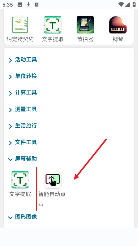 1、进入实用百宝工具箱最新版后点击下方的屏幕辅助。
