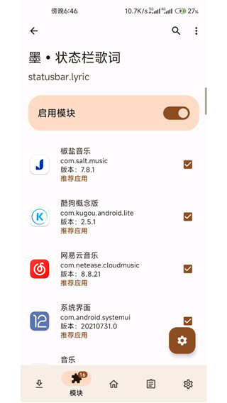 1、自动获取音乐软件当前播放的歌曲,并实时将歌词显示在状态栏 的一款xposed模块