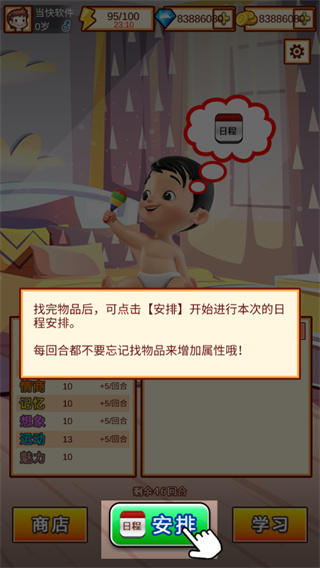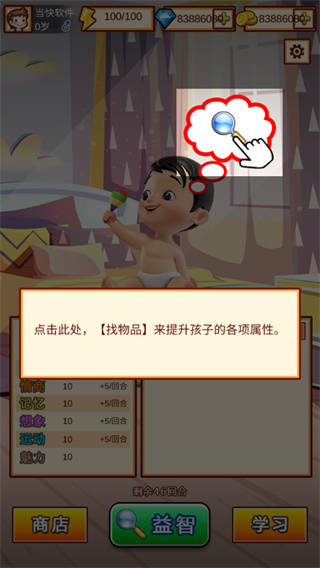 【挖脑洞】玩家可以通过点击脑洞格子获得基础属性和悟性,属性越高,则学习技能所需的悟性越少。是为了面子和培养孩子早期的自信,选择揠苗助长学习更多技能?还是厚积薄发,培养好属性能力,后面的技能水到渠成?
