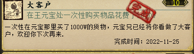 需要注意的是,一定要买高价值的物品,卖给元宝的时候,系统会把20%的金钱换成25%的师门,所以卖的物品一定要在1400W以上才能打成功绩,切记!